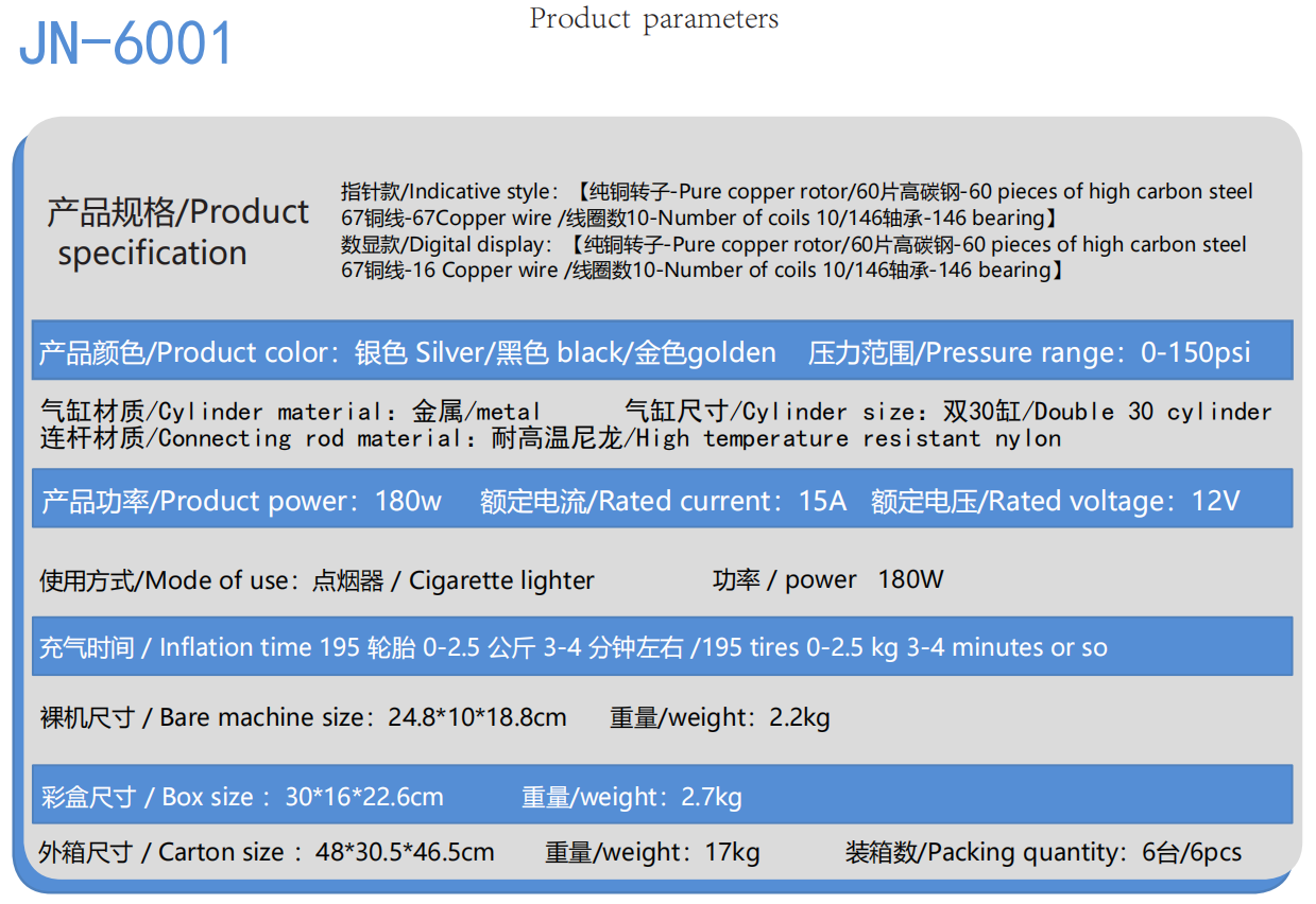 JN-6001 Vehicle Dual Cylinder Air Pump