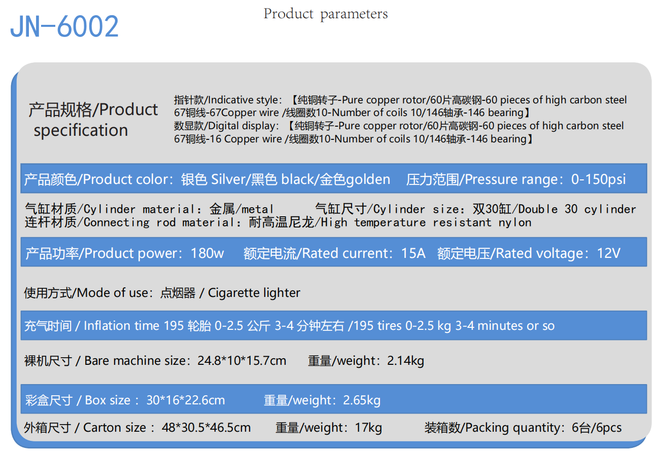 JN-6002 Vehicle Dual Cylinder Air Pump