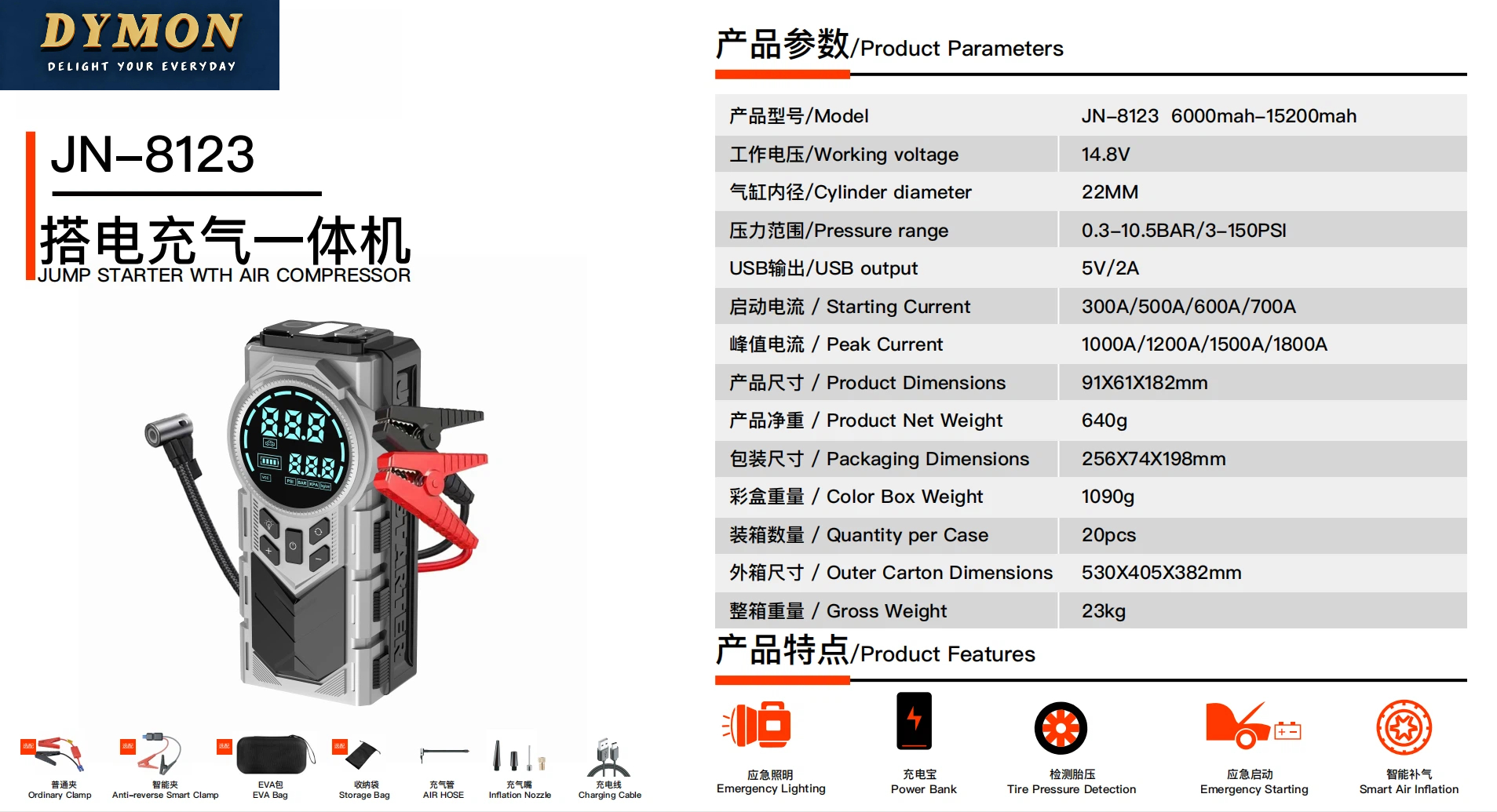 附加功能/Additional functions: lighting, tire pressure gauge, warning light, USB charging