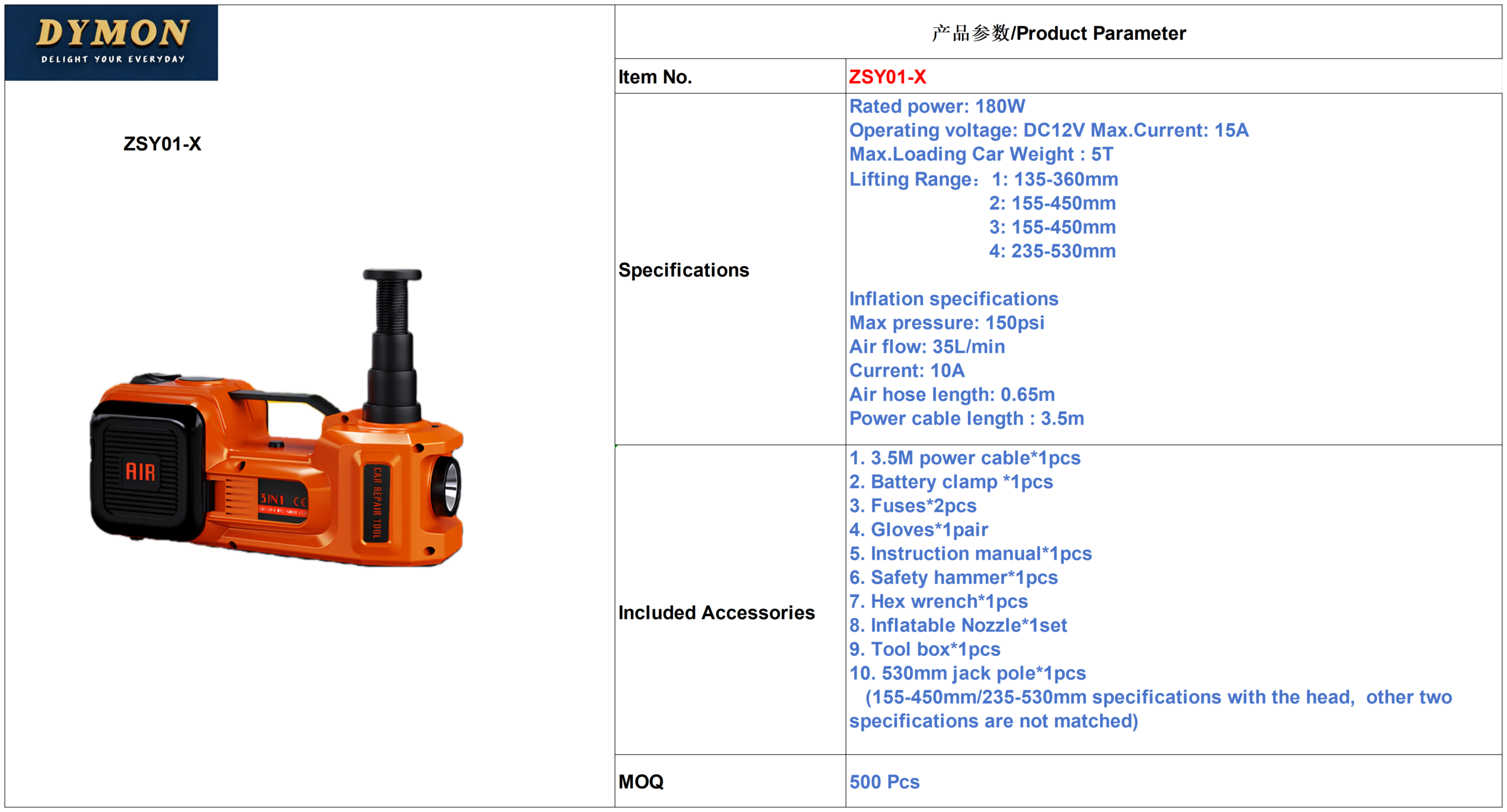 Bare machine jack weight: 4.5kg / 4.8kg / 5.6kg